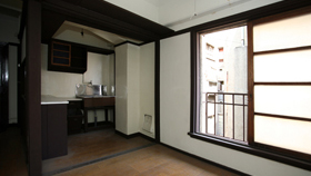 1호관은 1층이 상점점포 공간이고, 2층부터 4층까지는 주거용으로 되어있습니다. 2호관은 1층부터 3층까지 주거용, 4층은 독신용 주택과 공용 샘터, 화장실로 되어있습니다. 관동대지진 후의 지진재난에 대비한 견고한 콘크리트 구조로 되어있고, 실내에는 큰 콘크리트가 있는 간소한 구성으로 되어 있습니다만, 문과 문손잡이, 전등 스위치와 채광창, 그리고 1층의 집회소로 되어있는 방의 접수창구의 장식격자 등에서 다이쇼,쇼와 초기의 모더니즘을 느낄 수 있습니다.